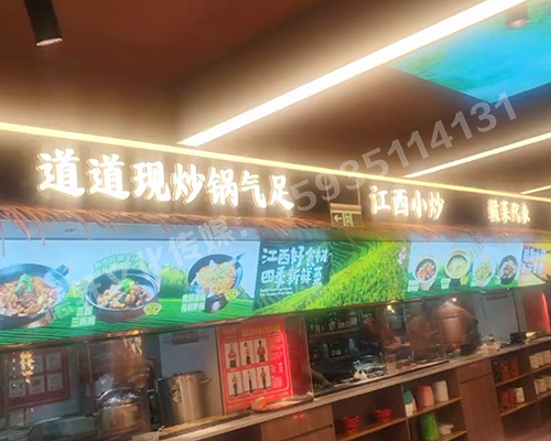 江西小炒太原親賢街店門頭+店內燈箱+發光字+軟裝              江西小炒太原親賢街店門頭+店內燈箱+發光字+軟裝